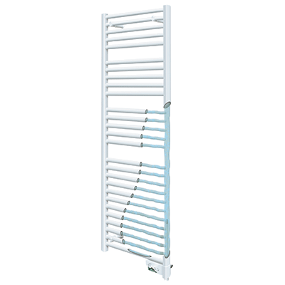 Бесшумный радиатор-полотенцесушитель с современным дизайном доступен в стандартной и узкой моделях, что позволяет ему идеально вписываться в ванную комнату даже маленького размера. С вилкой примерно в 30-ти см от нижней части, он очень прост в установке.